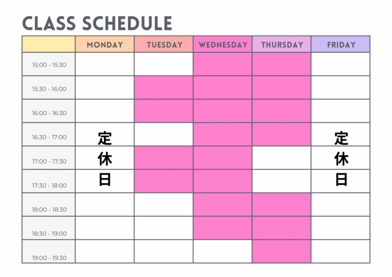 午前や19時以降を希望のかたはお問い合わせください。