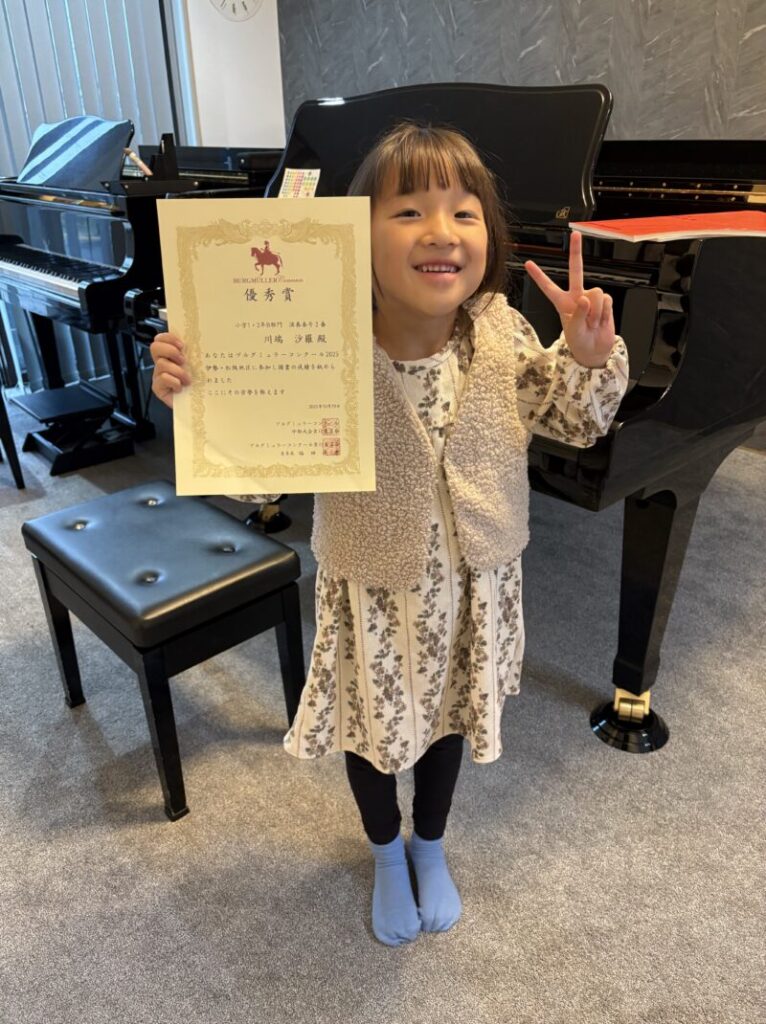 2025.10.19 Uncategorized ブルグミュラーコンクール地区大会結果 10月19日伊勢でブルグミュラーコンクールがありました。 小学1.2年生B部門 優秀賞 川端沙羅さん 小学3.4年生B部門 優秀賞 波多野 太智さん ファイナル出場おめでとうございます。